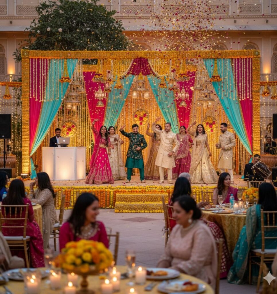 Let us plan your lively Sangeet night with joyful music, vibrant dance, unlimited entertainment, and memories that leave everyone smiling.